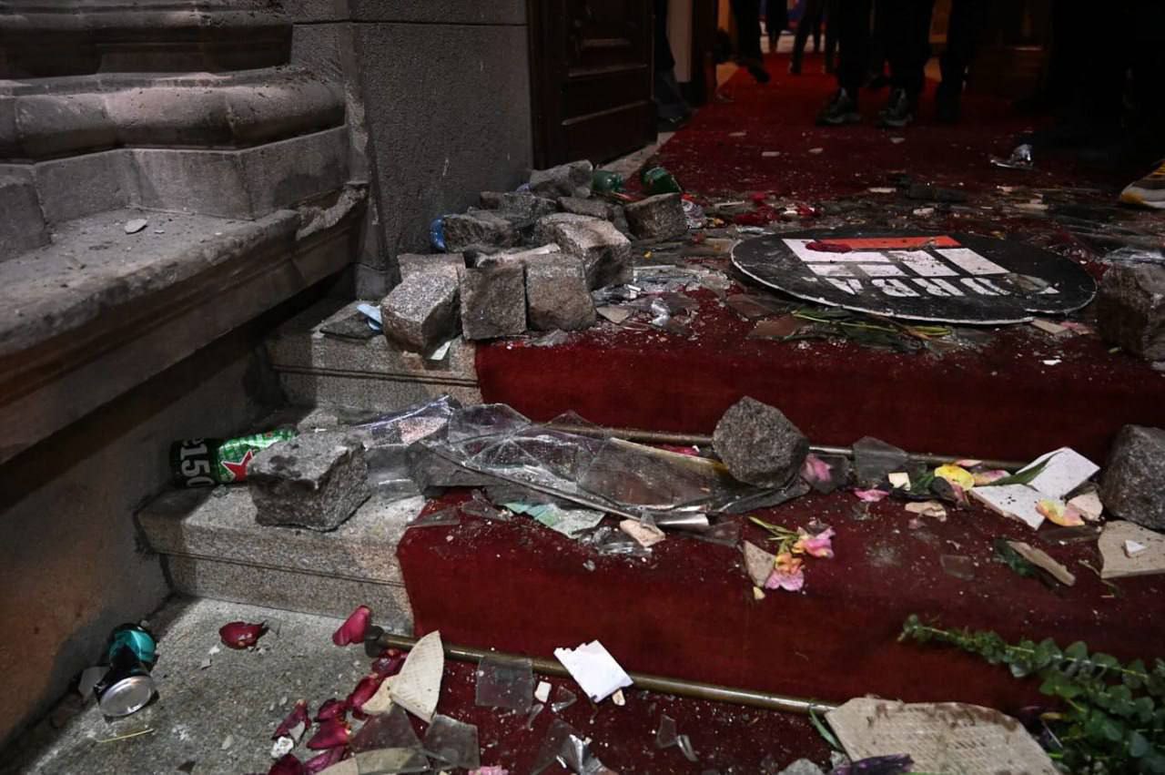 В Сети публикуют фото парламента Сербии, куда вчера прорывались протестующие
