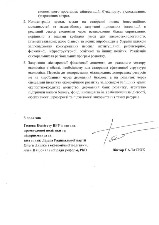 Галасюк обратился с открытым письмом к президенту и премьер-министру относительно изменения экономической и кредитно-денежной политики для защиты национальных интересов и развития экономики Украины.