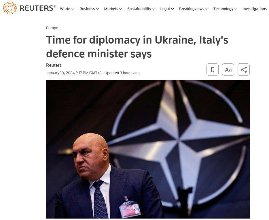 Министр обороны Италии призвал к переговорам касаемо войны в Украине