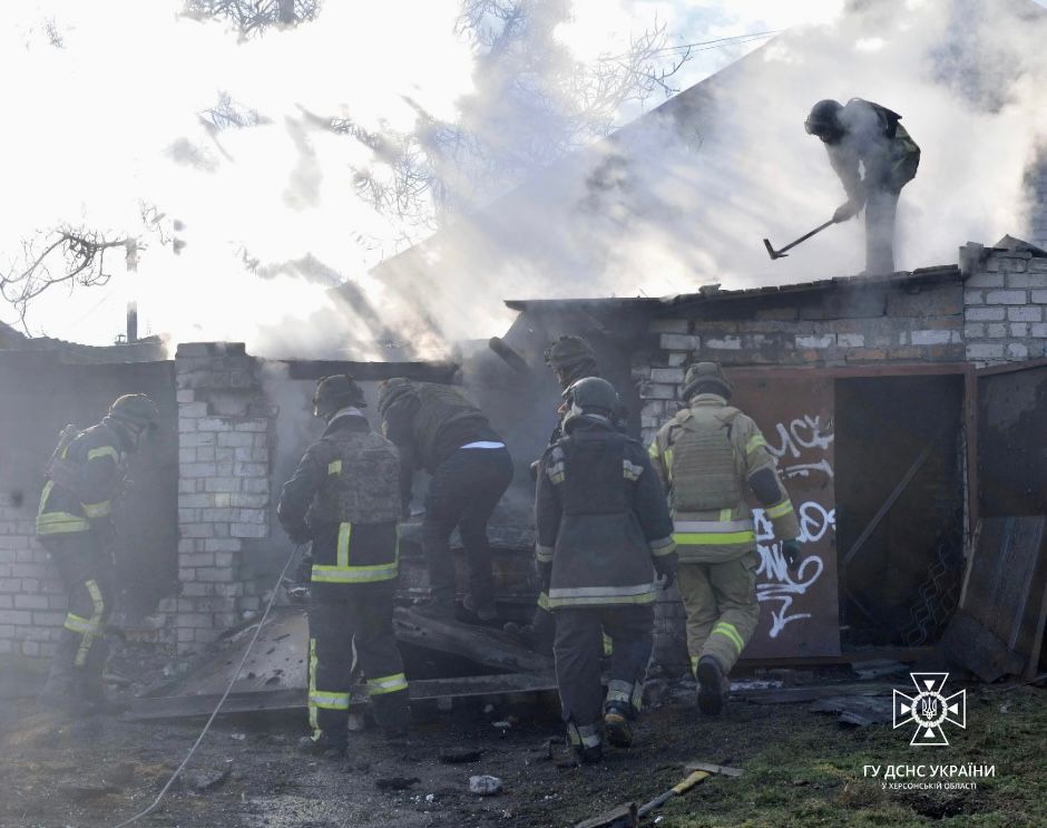 Под обстрелом было и село Ромашково в Херсонской области, где также загорелось гаражное помещение и автомобиль. Белозерские спасатели потушили пожар.