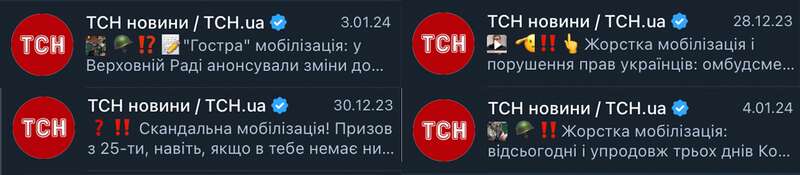 В топ-100 украинского сегмента также вошел ТГ-канал медиа "ТСН". Канал с аудиторией почти 1 миллион касательно мобилизации употребляет такие лексемы, как "жесткая", "скандальная" и "острая". Так, с помощью эмоциональной лексики админы этого ресурса пытаются привлекать внимание читателей.