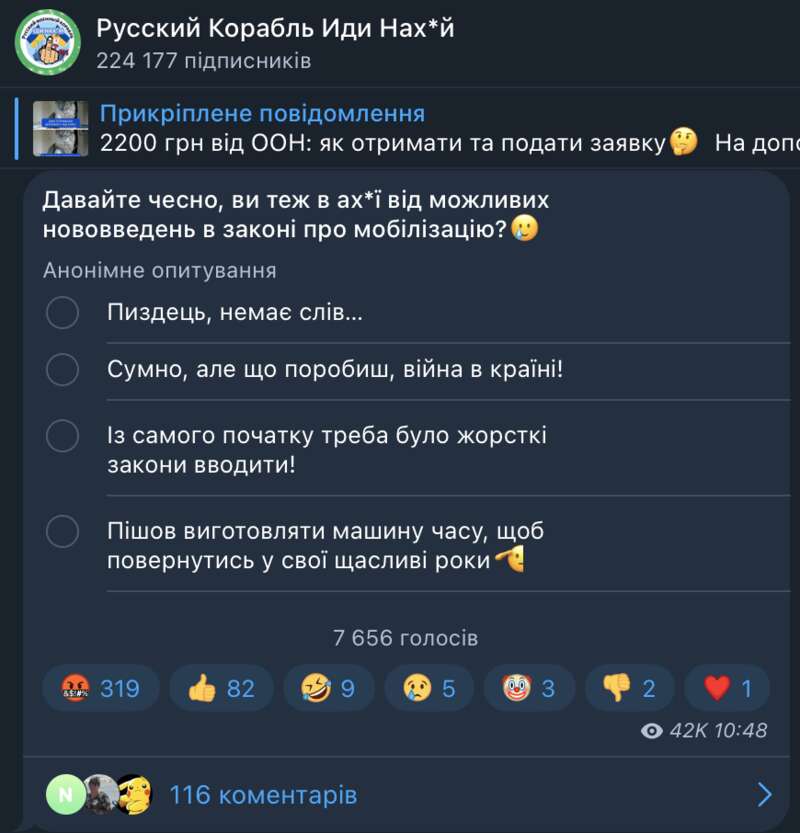 Тем временем тема мобилизации в "телегах" освещается, преимущественно, в негативном контексте, одновременно эмоционально и с элементами устрашения. Что, в конечном счете, дискредитирует ТЦК в том числе и армию в целом. Конечно, это играет на руку врагу – российские пропагандисты следят за контентом в украинском сегменте и находят новые и новые поводы распространения антиукраинского негатива не только среди своей аудитории, но и с прицелом на международных партнеров Украины для ее дискредитации.