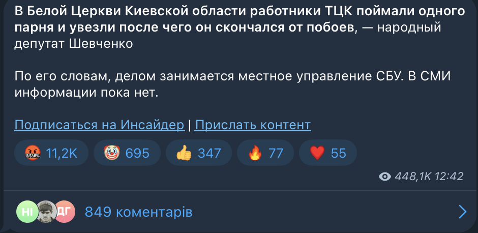 Примечательно, что Евгений Шевченко в январе вбросил фейк, который, казалось бы, умер в декабре прошлого года. Выдумка о якобы смерти украинца после отправки в ТЦК уже гуляла по Сетям, но ее опроверг военнослужащий Анатолий Штефан. Несмотря на это, за оживший фейк ухватились российские пропагандисты и начали сравнивать украинские ТЦК с гестапо.