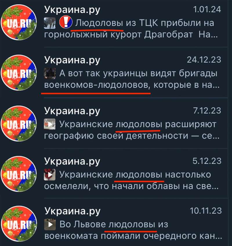Россияне пытаются обезличить работников украинских ТЦК, поэтому придумали называть их "людоловами", когда репостят с анонимных Телеграм-каналов видео, вроде стычек с военкомами.