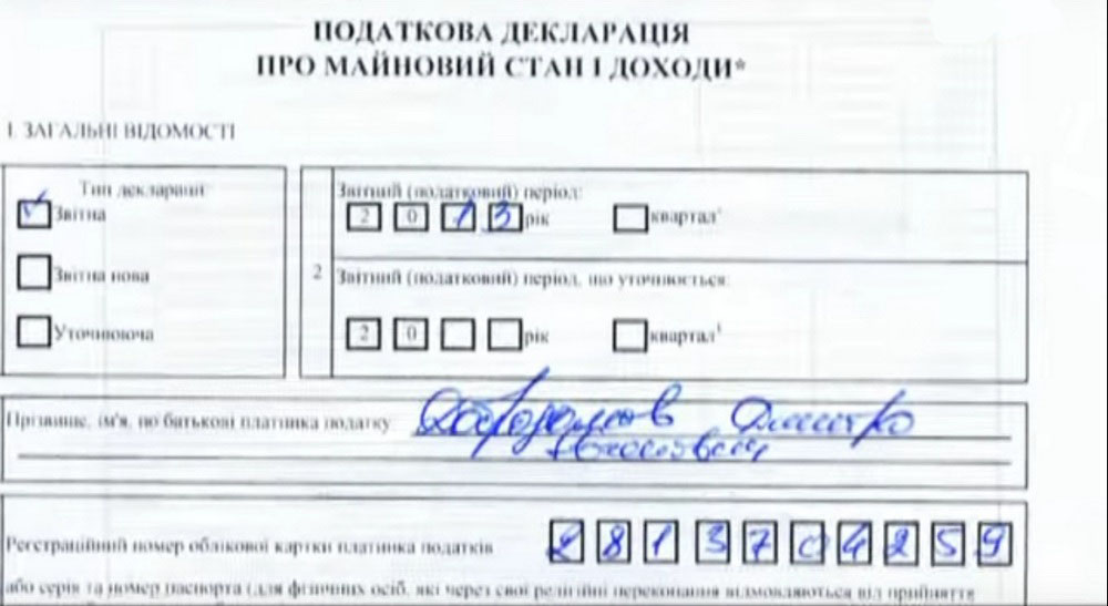 Так, у документі, підписаному ще кандидатом у депутати Добродомовом зазначений дохід – лише 72 тисячі гривень за 2013 рік, а у графі «дохід від операцій із продажу нерухомого майна» – прочерки.