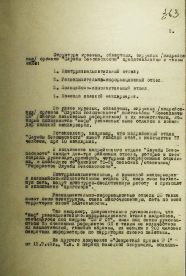 После анализа полученной информации, как отмечается в приказе, референты СБ отбирают материалы на лиц, в отношении которых необходимо провести следствие, и передают для дальнейшей работы полицейско-исполнительным отделам.