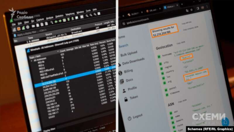 "В таком случае информация идет на серверы, как мы видим, в Германии. Также через серверы идет и видеопоток", - комментирует исполнительный директор "Лаборатории компьютерной криминалистики" Сергей Денисенко.