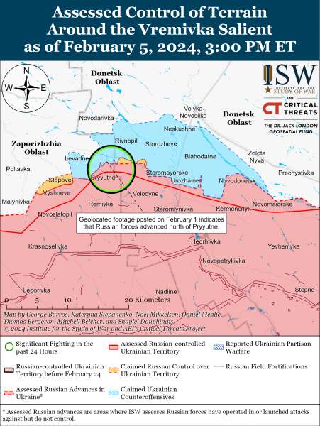 Позиционные бои продолжались на западе Запорожской области 5 февраля, но подтвержденных изменений на линии фронта не было.