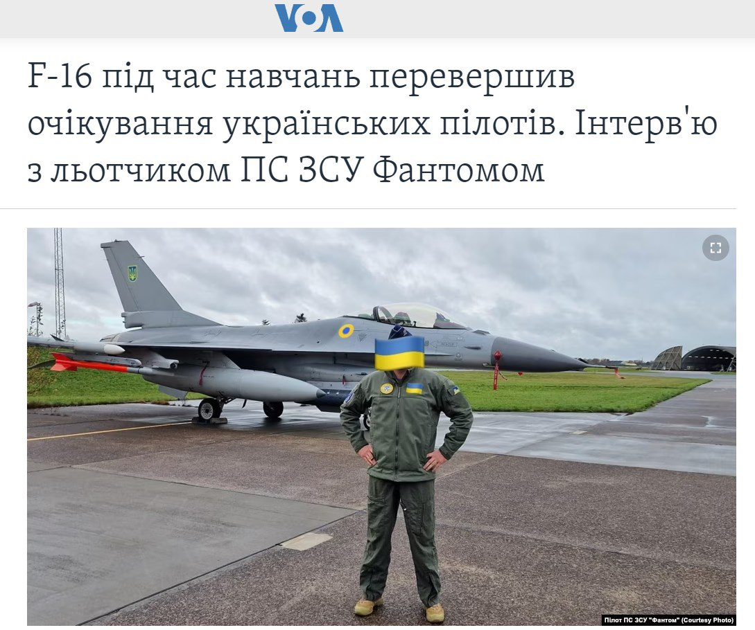 Изначально изображение опубликовал Голос Америки с подписью, что на снимке изображен пилот ВС ВСУ с позывным "Фантом".