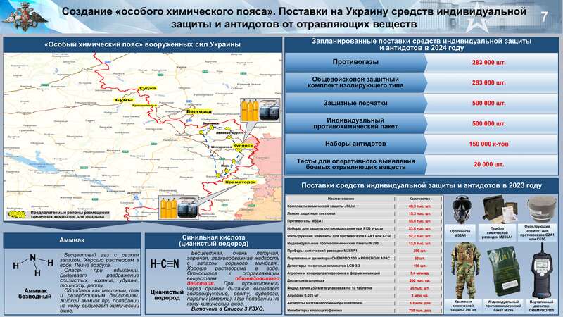 Российские власти планируют показать собранную информацию на 105-й сессии Организации по запрещению химического оружия, которая состоится 4–5 марта в Гааге. В отчете, который презентовали на брифинге, рассказывают о якобы примерах использования Украиной запрещенных химических веществ. В качестве доказательств приводят данные о средствах химической защиты, полученные от стран Запада.