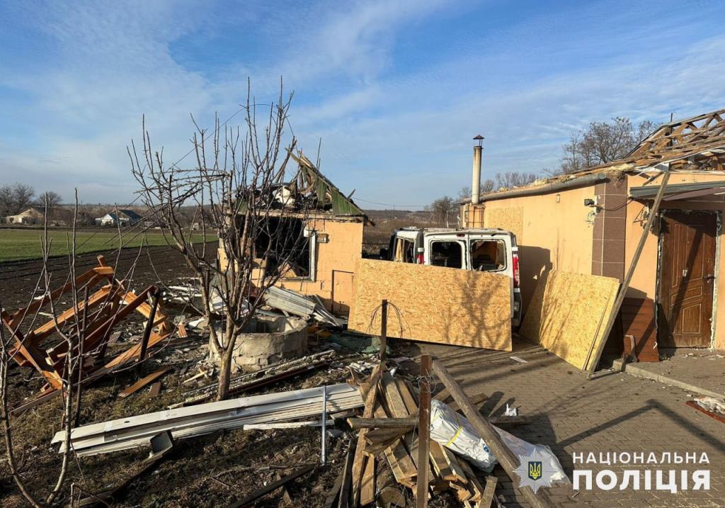 Повреждено 58 гражданских объектов: 37 жилых домов, школа, сельскохозяйственное предприятие и 480 тонн зерна, автомобили, электросети.