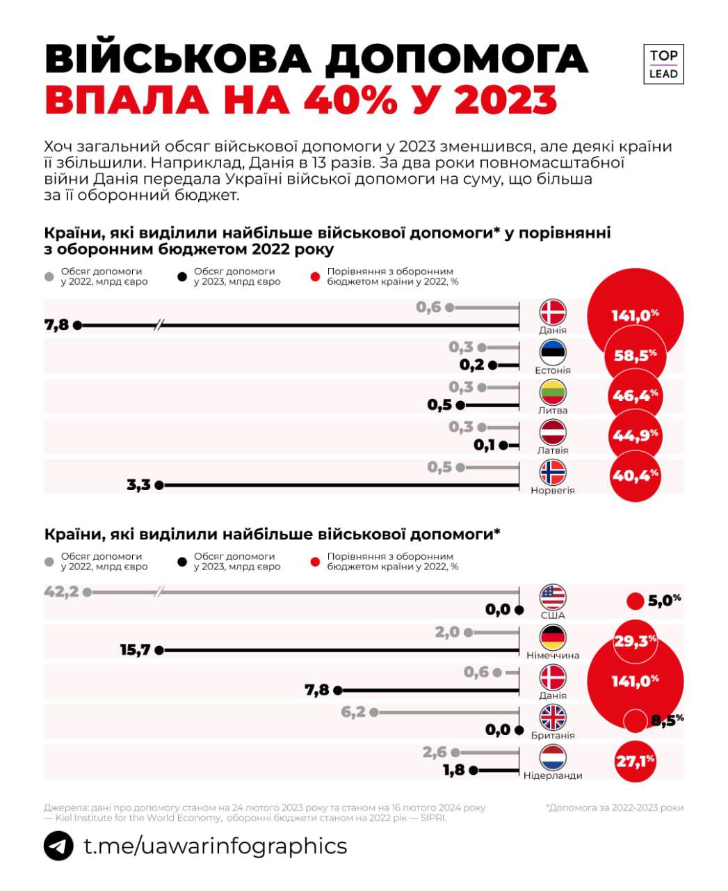 Военная помощь Украине за 2023 год упала на 40%