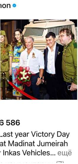 Например, стенд "Инкас Дубай" посетил любимый путинский певец-патриот Олег Газманов, а автомобили компании представляют девушки-модели в пилотках и с георгиевскими лентами на груди. Других образов, чтобы подчеркнуть российскую подлинность эмиратской компании, у Максумова не нашлось.