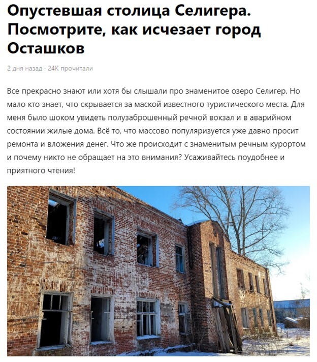 Остров имеет статус закрытого административного образования, а город Осташков хотя и не закрыт официально, но открытость его условна, судя по объемам информации в социальных сетях, медиа и других доступных источниках. Туризм не развивают, посторонние инвестиции не привлекают от слова "совсем". Осташек – яркая демонстрация российской действительности: когда собственной историей пренебрегают в обмен на целесообразность закрытости. Скрепы являются скрепами…