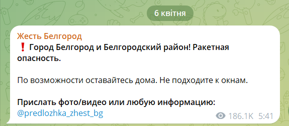 При этом вряд ли белгородцы, которые с утра бьются в истерике, осознают, кого должны благодарить за взрывное пробуждение. Ракетная тревога в Белгороде была объявлена в 05:41 по киевскому времени. А еще в 00:22 белгородские паблики рапортовали о "вылетах" из города: оттуда российские оккупанты снова атаковали Харьковщину.