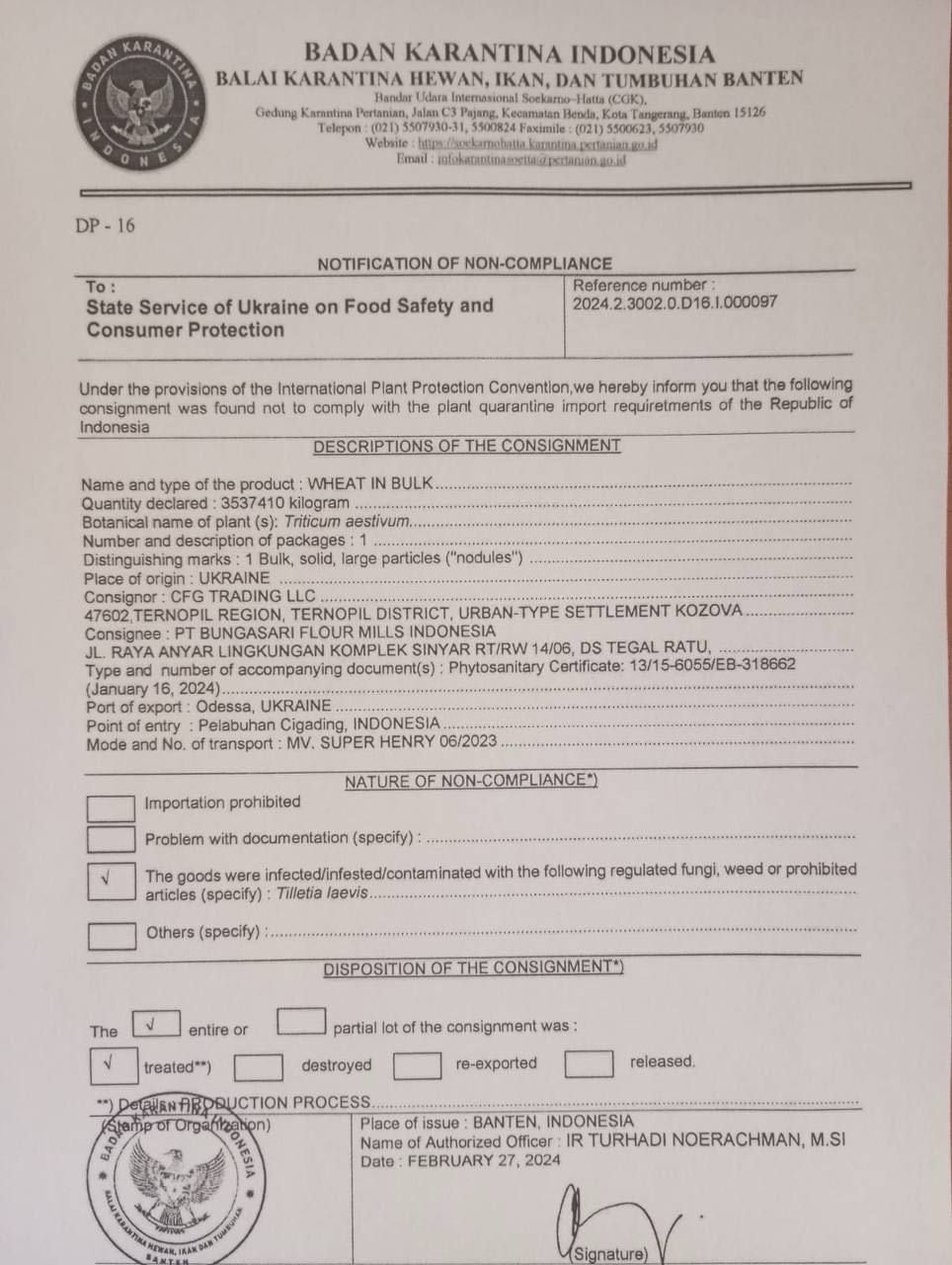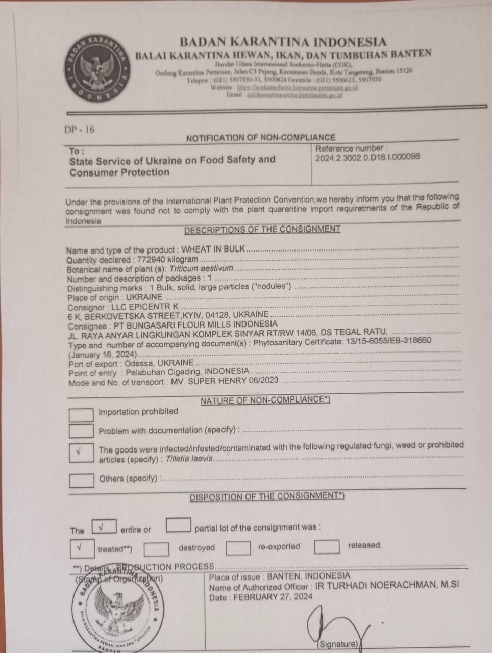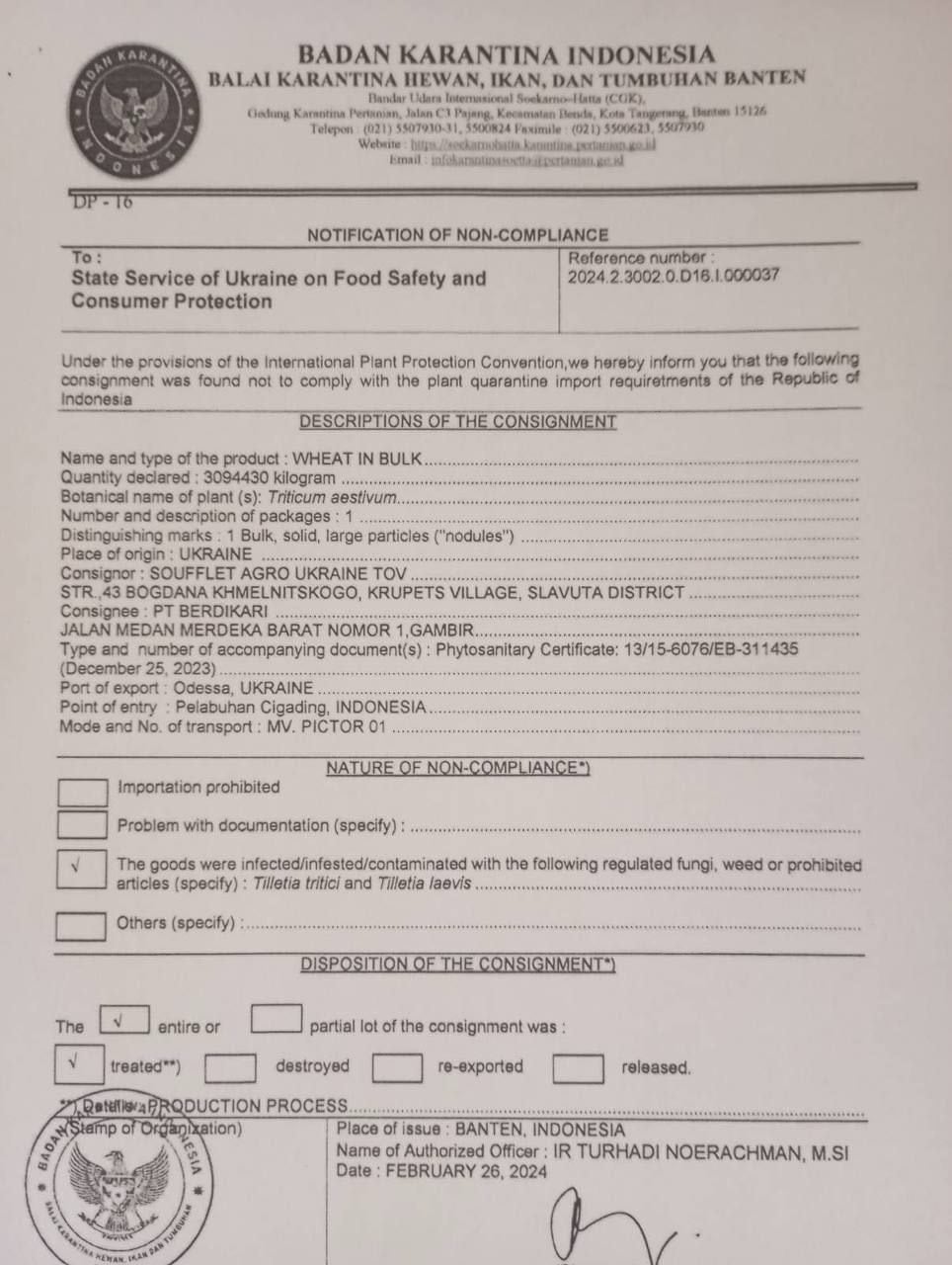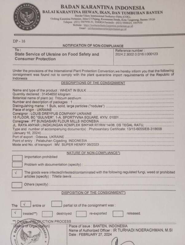 Как следствие – предупреждение (нотификации) от стран-партнеров о закрытии рынка сбыта зерновой продукции для Украины.