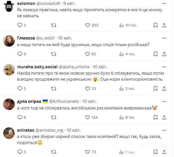 Чем дальше закончилось общение, неизвестно, но сообщение вызвало бурную реакцию в Сети. Украинцы не понимают, зачем было интересоваться языковыми пожеланиями кандидата, чтобы потом просто поставить перед фактом. Более того, отмечают пользователи Х, если компания из Одессы позиционирует себя как американская, почему же языком общения между работниками выбрали русский, а не английский.