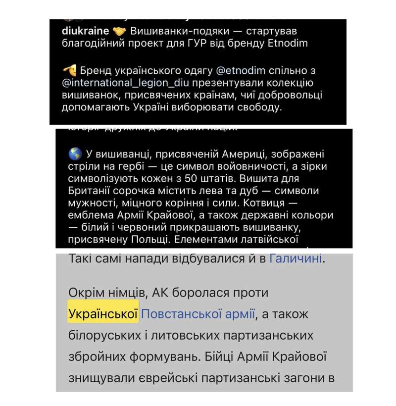 “Etnodim презентовал вышиванку в честь польской Армии Краевой, которая во время Второй мировой войны воевала против УПА и известна убийствами гражданского украинского населения на Волыни. Вы там с ума сошли?», — написал он.