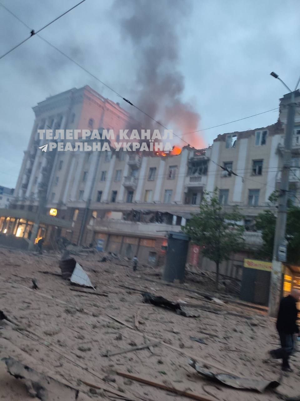 Первые минуты после попадания вражеской ракеты в здание в Днепре.