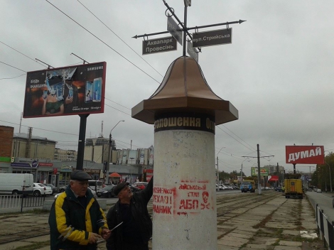 Також за інформацією КВУ, по місту були масово поширені наклейки з написом: «Васюник Садовий» виконані в тому ж стилі, що і білборди з написом «Думай», які продовжують передвиборну риторику Ігоря Васюника.