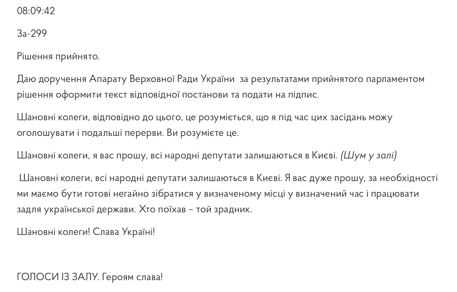 Скриншот стенограммы заседания ВРУ за 24 февраля 2022 г.