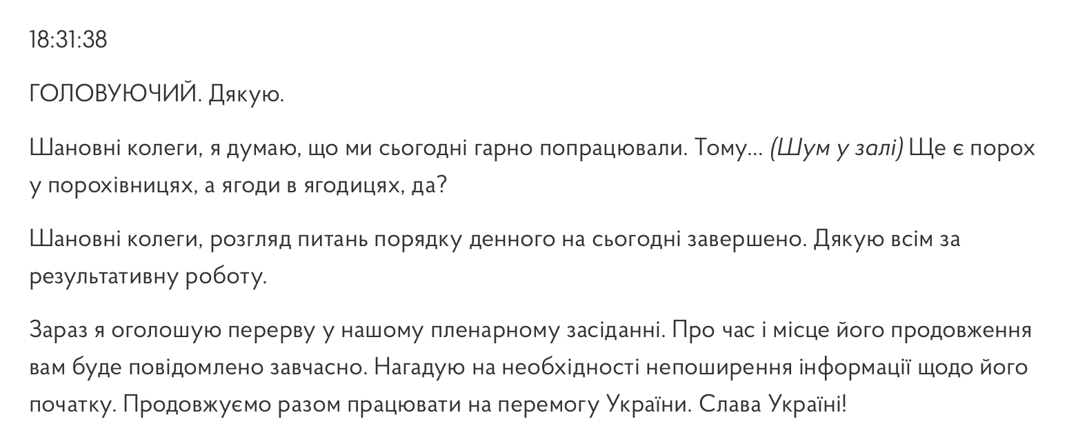 Скриншот стенограммы заседания Верховной Рады 24 августа 2023 г.