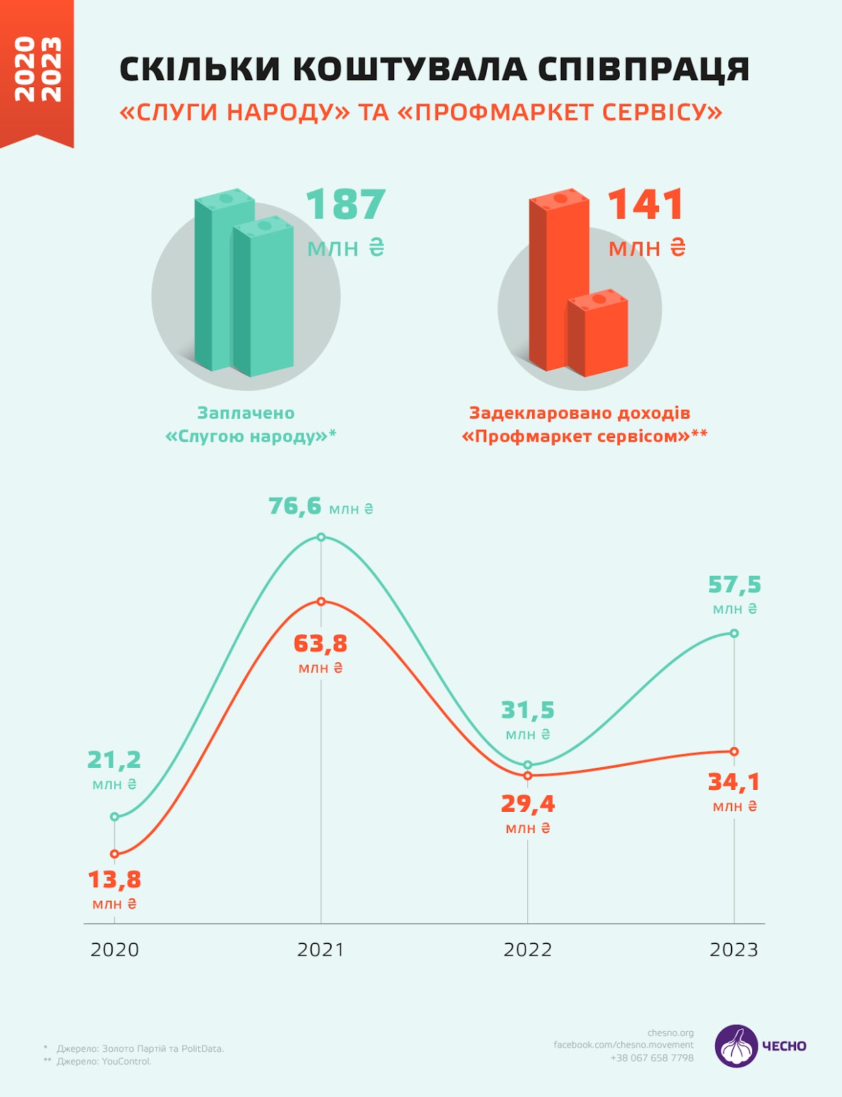 С финансовой точки зрения бизнес был довольно выгодным - ежегодно "Профмаркет Сервис" получал от "Слуги народа" от 20 млн до почти 80 млн гривен. Все это благодаря одному договору, заключенному 21 января 2020 года. Правда, предыдущего коммерческого опыта у компании не было, ведь была создана лишь 19 декабря 2019 года — за месяц до подписания контракта с партией.