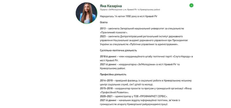 В частности, доход через эту компанию получал депутат Криворожского районного совета Александр Лишин и депутат Покровского районного совета в Кривом Роге Анастасия Черноус. Также в городской совет баллотировался глава "Зе!Молодежки" в городе и администратор "Профмаркет Сервис" Яна Казарина.