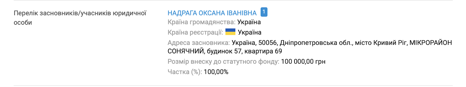 Обладательницей "Профмаркет Сервис" с сентября 2020 года является Оксана Надрага. Живет она в Кривом Роге, никаких других компаний или даже зарегистрированного ФЛП нет.