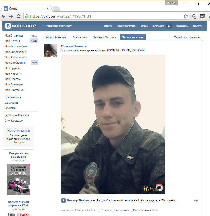 Для проверки всей этой информации, мы под вымышленной легендой установили контакт с близкой подругой погибшего Вадима и расспросили её об обстоятельствах смерти: