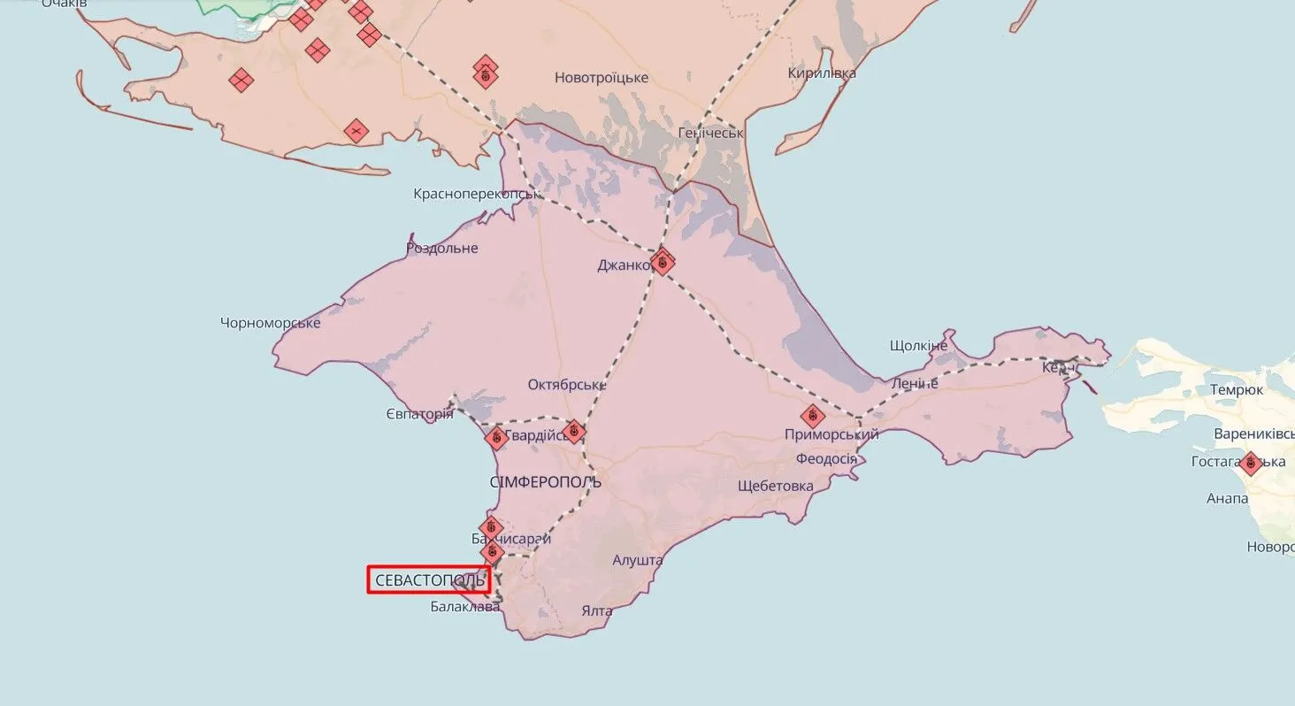 Координаты военного объекта противника: 44.3617, 33.2808.