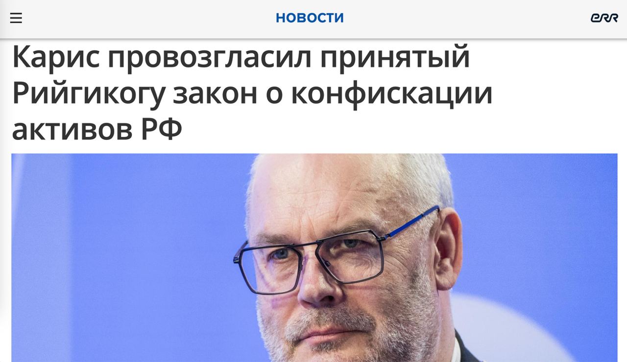ERR сообщает, что президент Эстонии подписал закон о возможности передать Украине некоторые активы РФ.