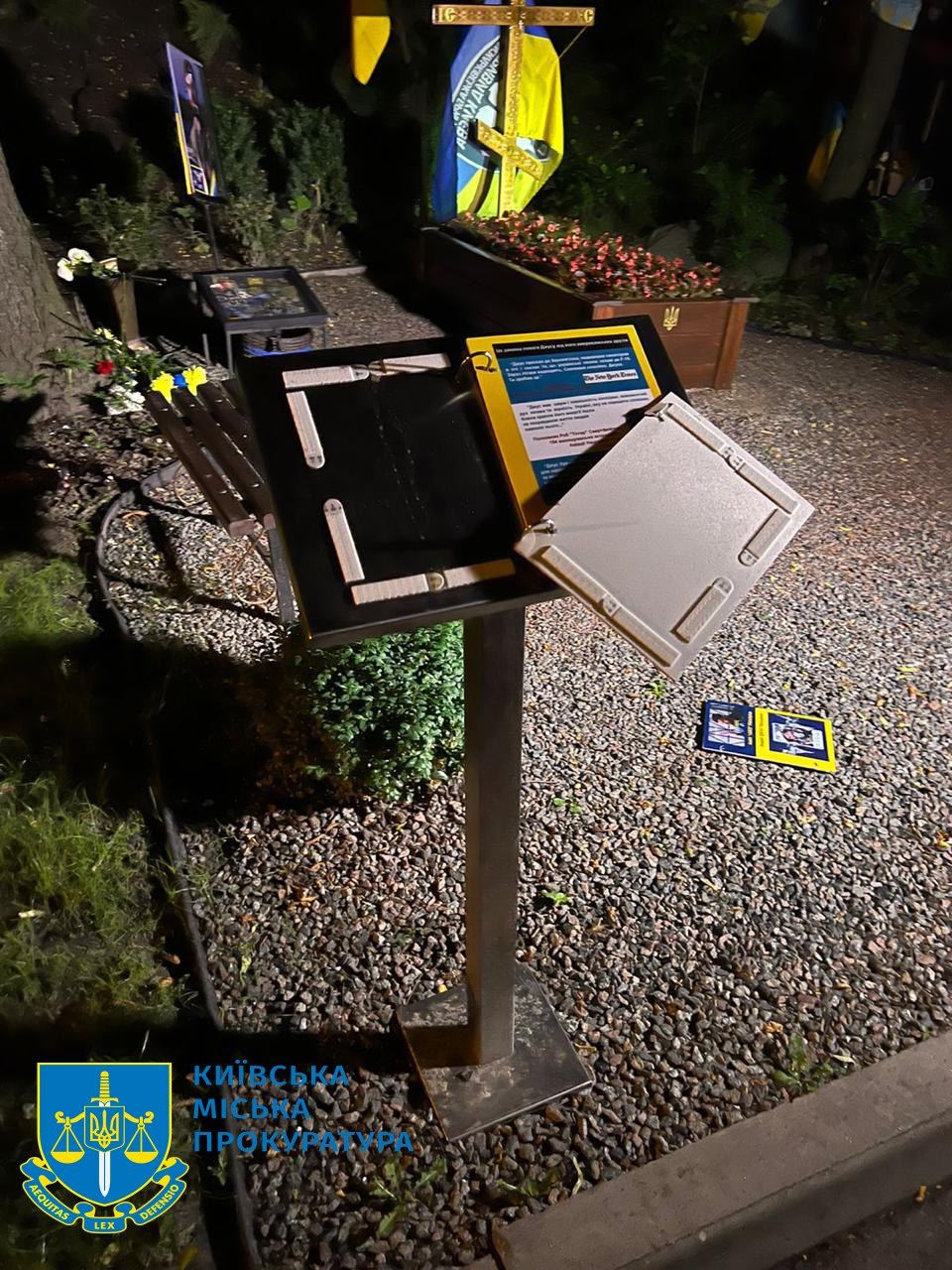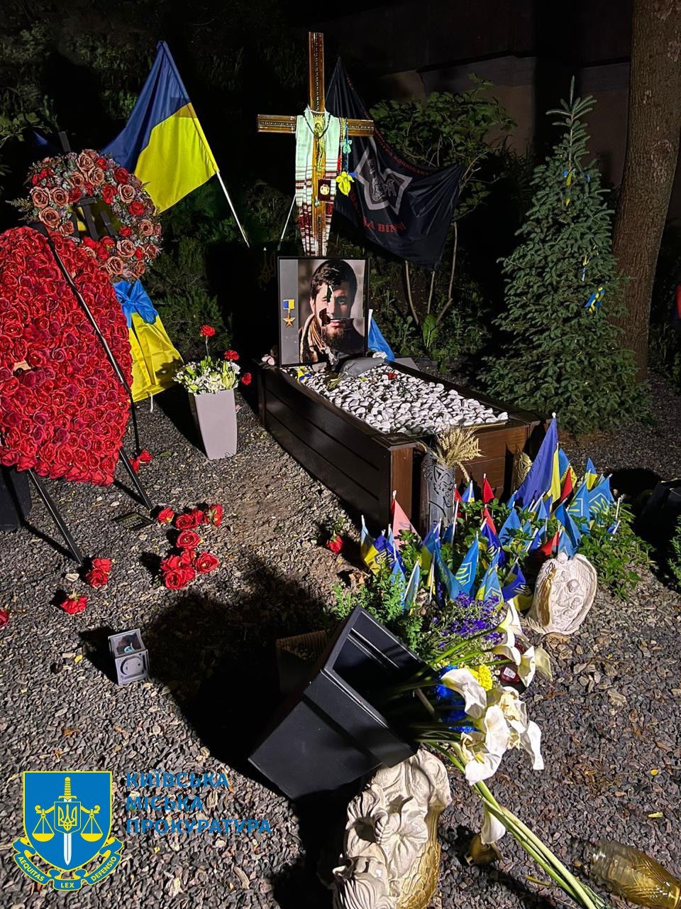 Как сообщили в Киевской городской прокуратуре, 20 июня утром на территории Аскольдовой могилы в столице неизвестная женщина совершила акт вандализма на могилах погибших защитников Украины – Дмитрия Коцюбайла с позывным "Да Винчи", Андрея Пильщикова с позывным "Джус", а также Павла Петриченко.