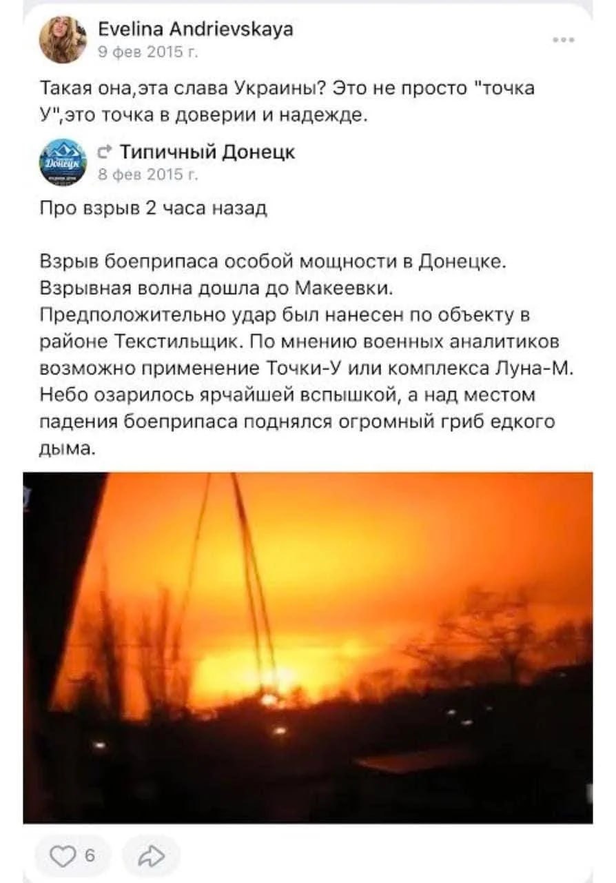 В 2015 году Эвелина Андриевская распространяла фейки российской пропаганды и рассказывала о зверствах ВСУ на Донбассе.