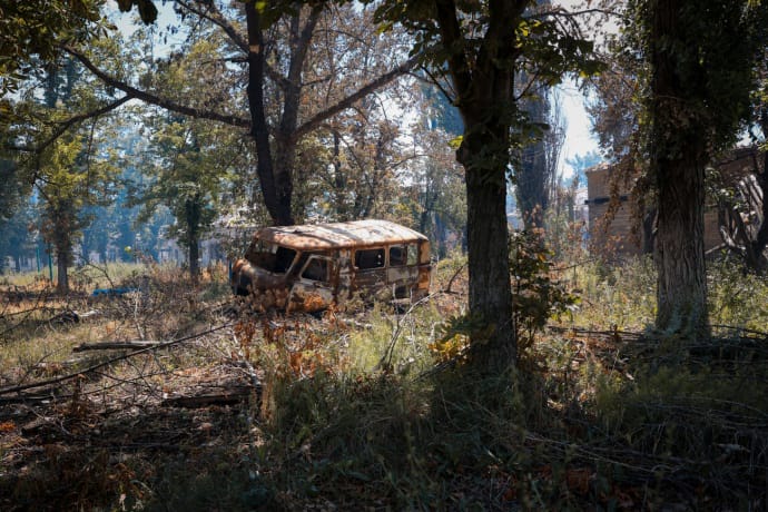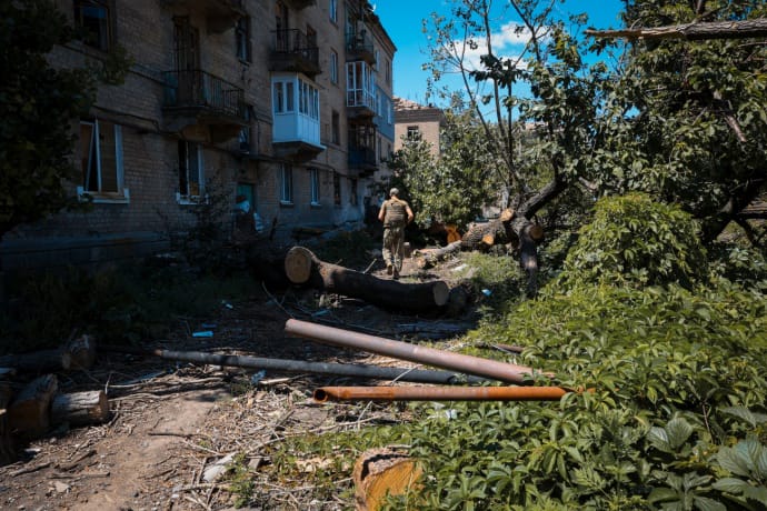 По наблюдениям журналистов УП, которые освещают оборону Часового Яра с февраля, в городе стало значительно больше разбитых многоэтажек, сожженных прилетами FVP-дронов автомобилей и переломанных пополам деревьев.