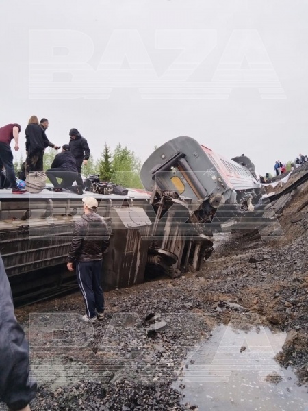 Пассажирский поезд слетел с путей в воду на одном из перегонов в республике Коми в России.