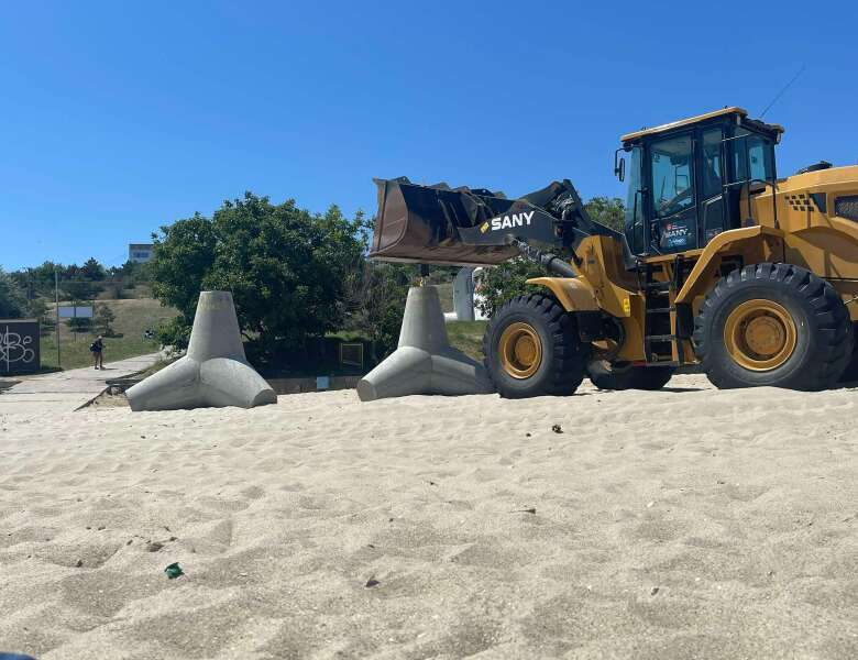 В понедельник, 1 июля, на центральном пляже Черноморска началась установка бетонных тетраподов. Эти конструкции предназначены для оборонительных и укрепляющих позиций при высадке вражеского десанта.