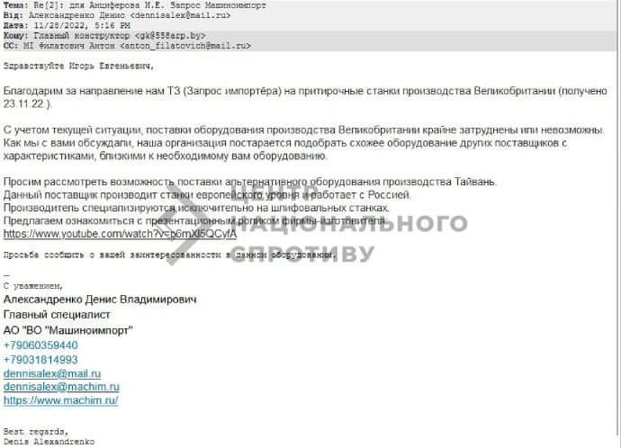 В целом, во внутренней переписке, которая стала доступна подполью, есть немало информации о сложностях с изготовлением деталей, вызванных нехваткой оборудования.