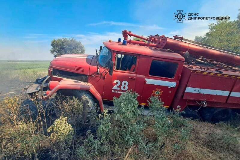 Кроме того, поврежден пожарно-спасательный автомобиль спасателей города Никополь.