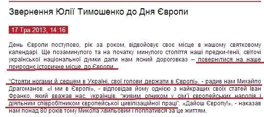 Но, к сожалению, такое трогательное начало уже использовал в своей речи другой политик.Вот как выглядело обращение к украинцам…. Юлии Тимошенко в Дни Европы в прошлом году – 17 мая.