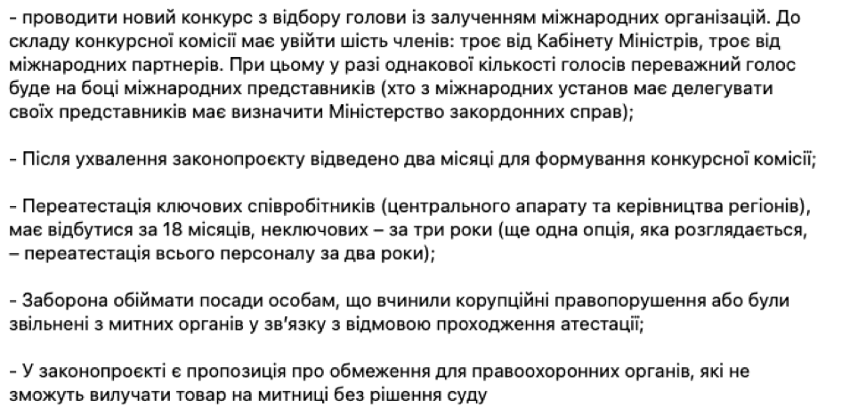 Почему я так утверждаю? Единственный документ в парламенте, который сегодня касается таможни – это законопроект №6490-д, который ВРУ поддержала за основу и который предусматривает "реальную" перезагрузку ГТС. Проект предусматривает комиссии с международниками для избрания директора ГТС и переаттестации кадров. Но это не реформа, это нонсенс! Таможня в Украине – это система с сотнями тысяч и миллионами грязных денег, и парламентарии предлагают решать вопросы аттестации работников.