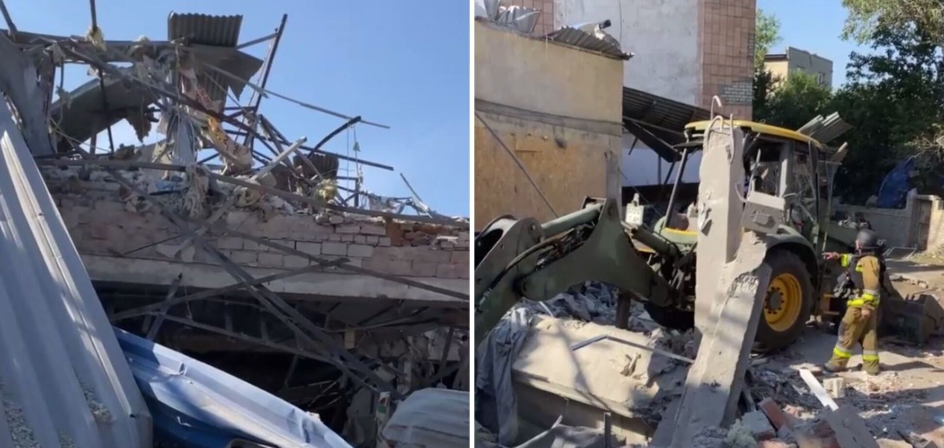 На месте частично разрушенного и поврежденного здания шел разбор завалов. Видео было снято корреспондентами "Радио Свобода".