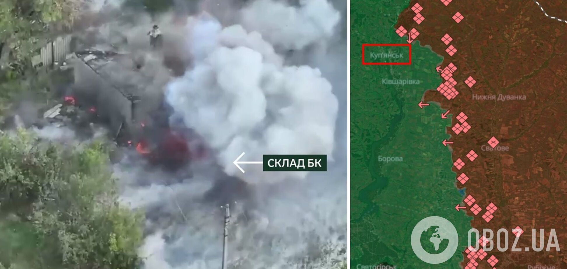 "Уничтожены вражеские укрытия и состав боекомплекта – результат работы ударных дронов на Купянском направлении", – говорится в подписи к кадрам.