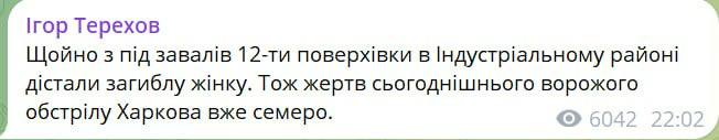 Число жертв в результате российских обстрелов Харькова возросло до 7 человек, - мэр Терехов.