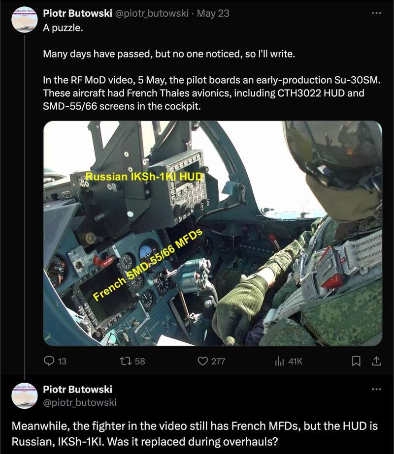 Постепенно этот процесс импортозамещения все же происходит. Вот, на скриншоте за май 2024 года замечена замена французского HUD 3022 на российский ИКШ-1КИ.