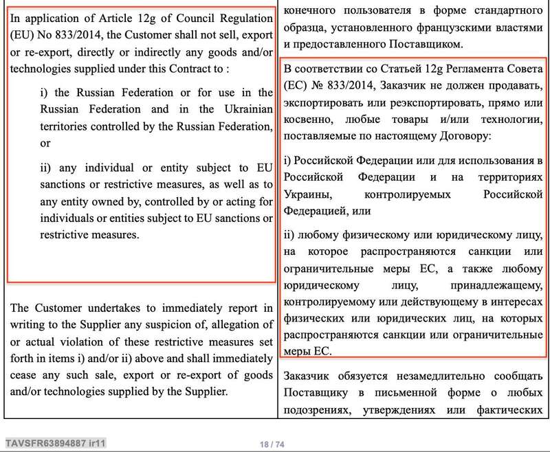 Мы надеемся, что французские Thales и Safran непременно увидят, что их контрагенты откровенно, коварно и цинично врут. С одной стороны, они подписывают документы, где обязуются не передавать третьим сторонам, особенно России, товары, оборудование и услуги, а с другой – выполняют все, что нужно россиянам и получают от них финансирование.