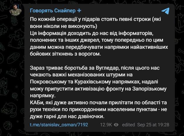 На это намекают украинские военные в телеграме "Говорят Снайпер"