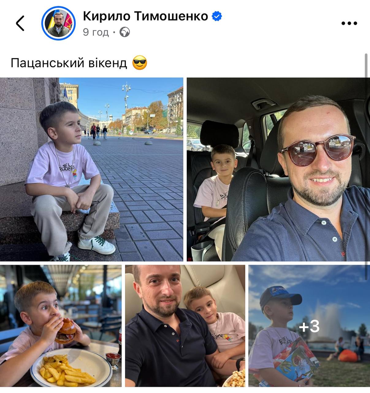 Экс-заместитель руководителя Офиса президента Украины Кирилл Тимошенко поделился на своей странице в Facebook фотографиями с отдыха вместе с сыном.