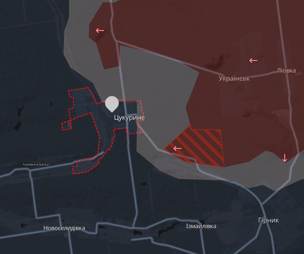 Вчера военный паблик Deep State подтвердил российское наступление юго-восточнее Цукурино. Однако, как сообщают украинские военные, враг уже закрепился в южной части населенного пункта.