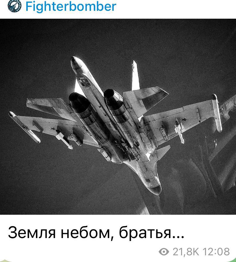 Российский Z-блогер Fighterbomber, который специализируется на авиации, намекнул на то, что оккупанты потеряли истребитель Су-34 вместе с экипажем.